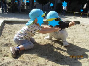 砂場で石集めをして友だちと見せ合いっこをしたりしました。