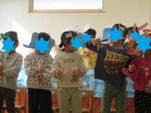 大きくなったね会ではみんなで劇や合奏、表現遊びなどを見せ合いっこしました。 乳児さんの表現を見て「かわいいね」と言ったり 幼児さんの発表を見て「すごいね」「じょうずだね」と お話する姿がありました。みんなに見てもらって達成感を感じている子ども達でしたよ。
