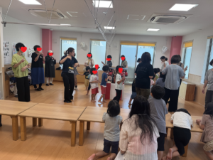 今年度の敬老の日の集いでは、おじちゃん、おばあちゃんと一緒に秋祭りを楽しみましたよ。