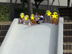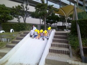 帰りに、隣にある滑り台もみんなで楽しみ、いつもとは違う経験ができ、満足そうな子供たちでした。